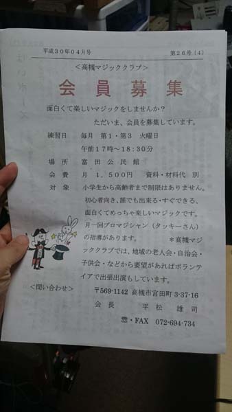4月から高槻の方にも出張手品講師に行かせていただくことになりました![]()